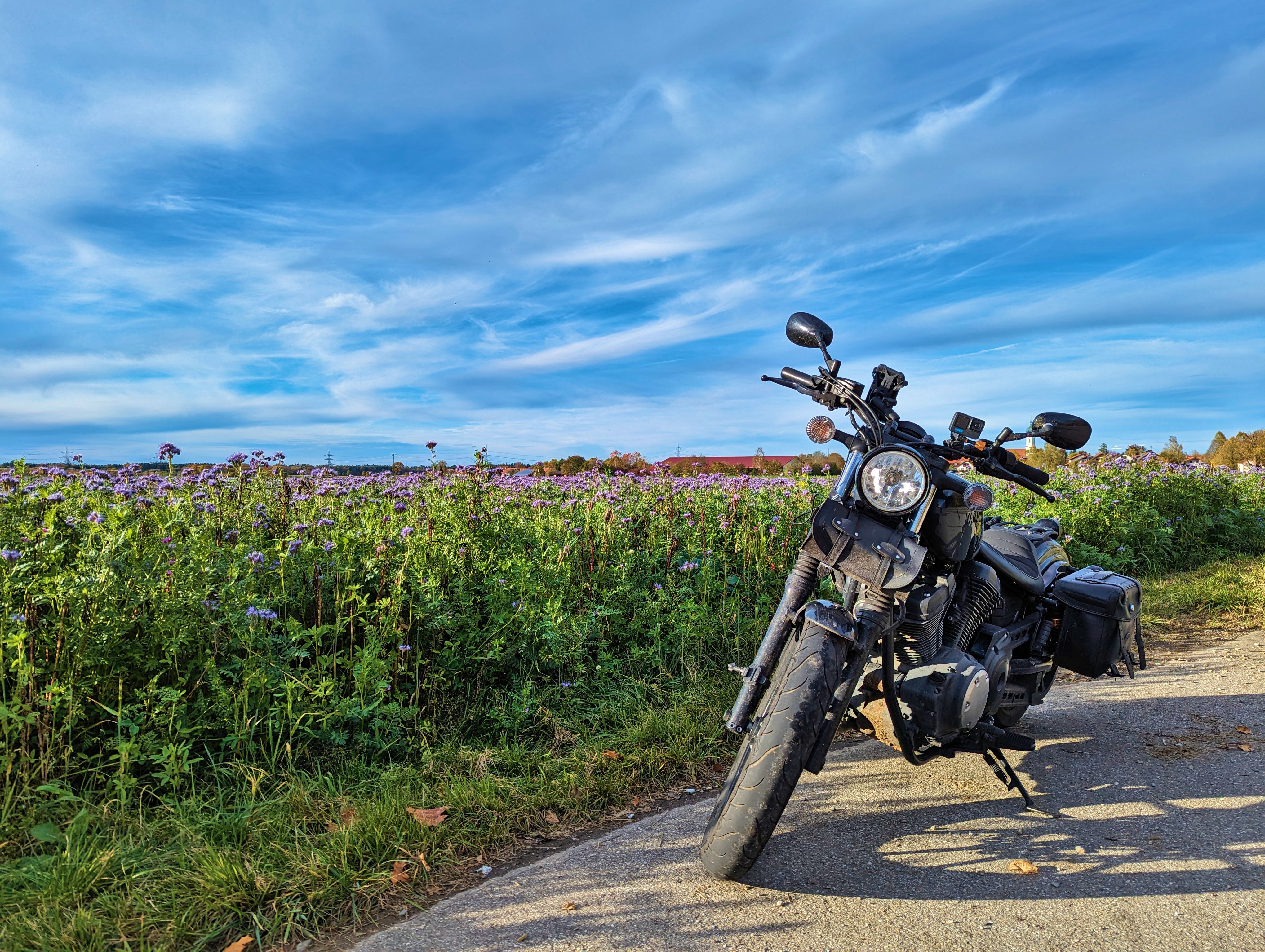 Die Tour, über die ich hier schreibe, fand Anfang November 2023 statt. Es war meine erste und einzige Fahrt im November 2023 und die letzte Tour der Saison 2023. Das Wetter versprach einiges an Sonne, die Temperaturen sollten sich allerdings nur zwischen 8 und 10 Grad Celsius bewegen. Eine lange Tour hatte ich also nicht geplant. Aber: Die Bolt ist von März bis November zugelassen, also will ich auch mindestens einmal pro Saison im November fahren!
