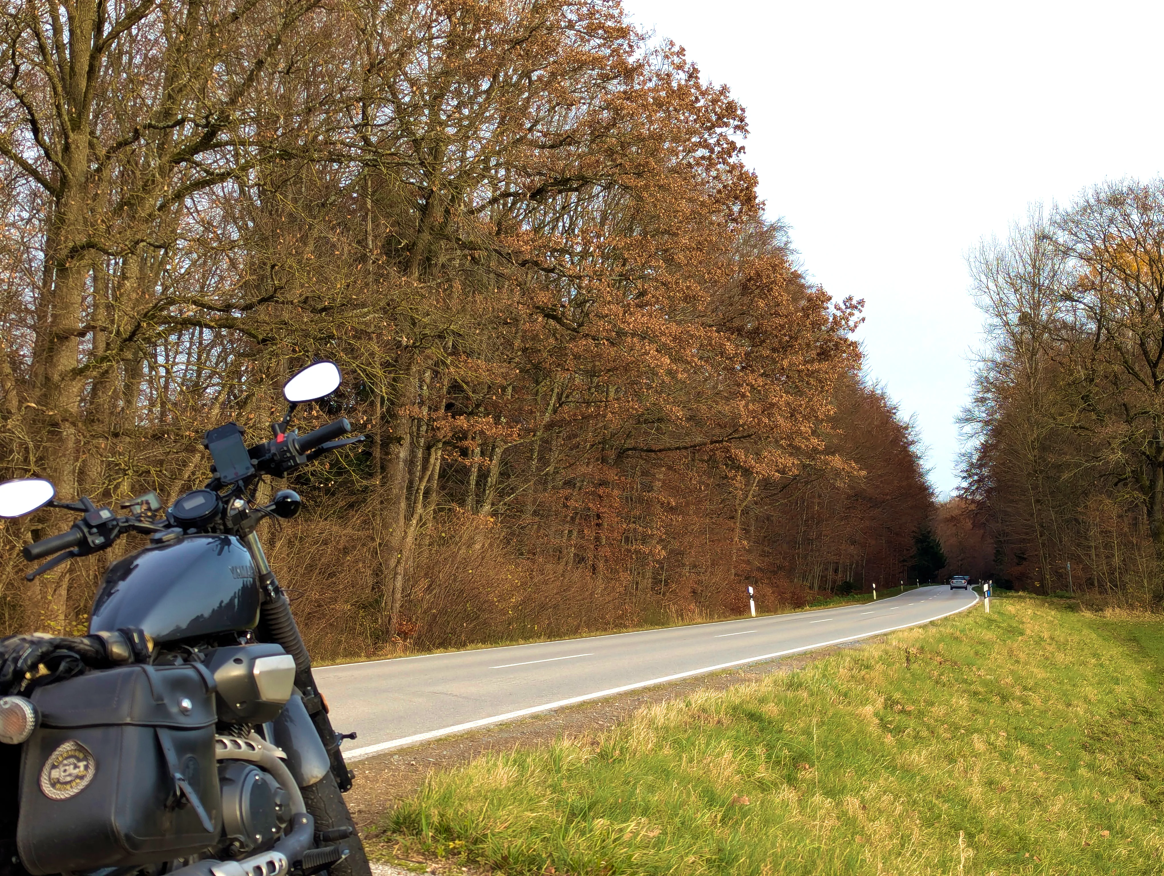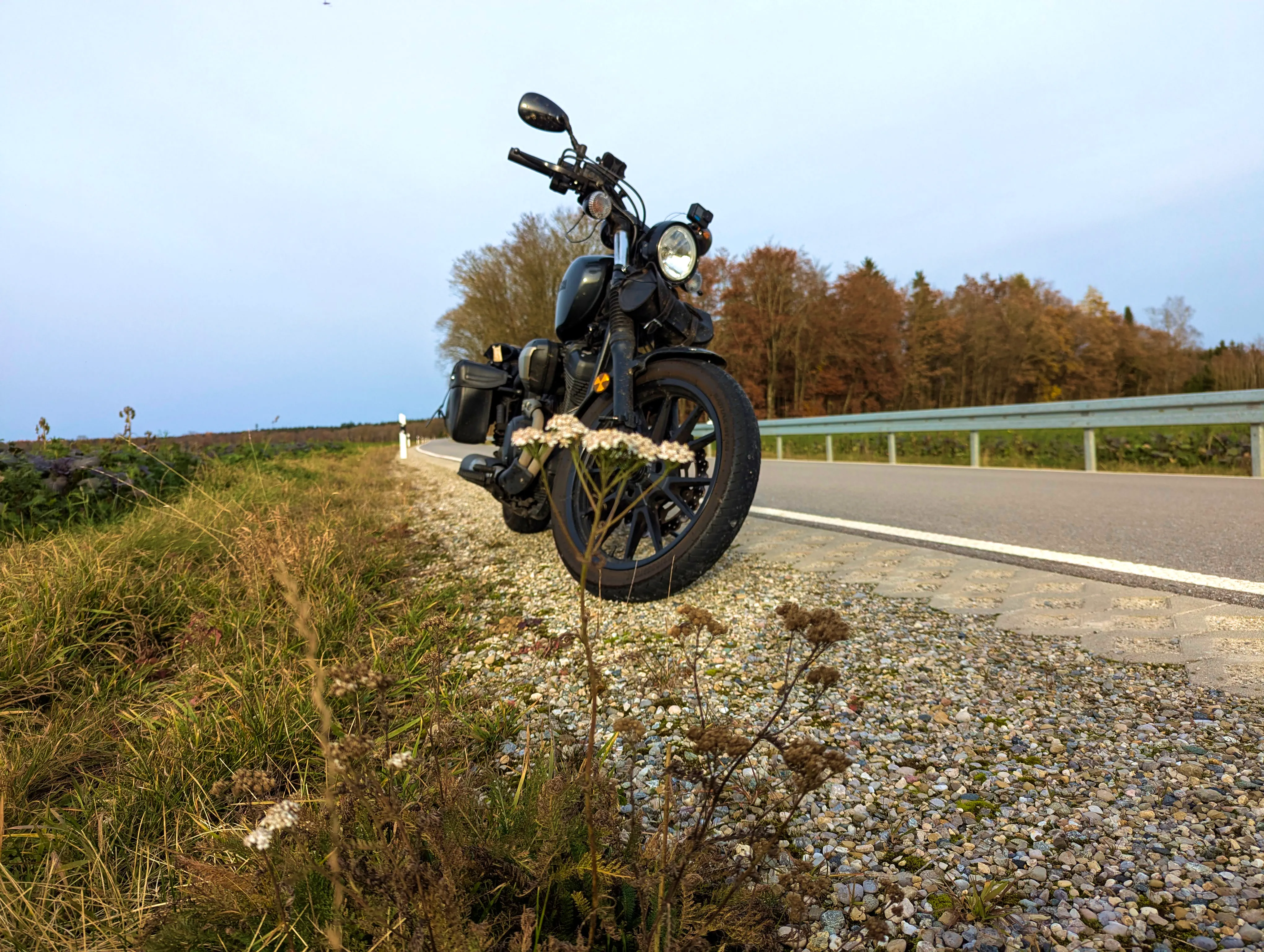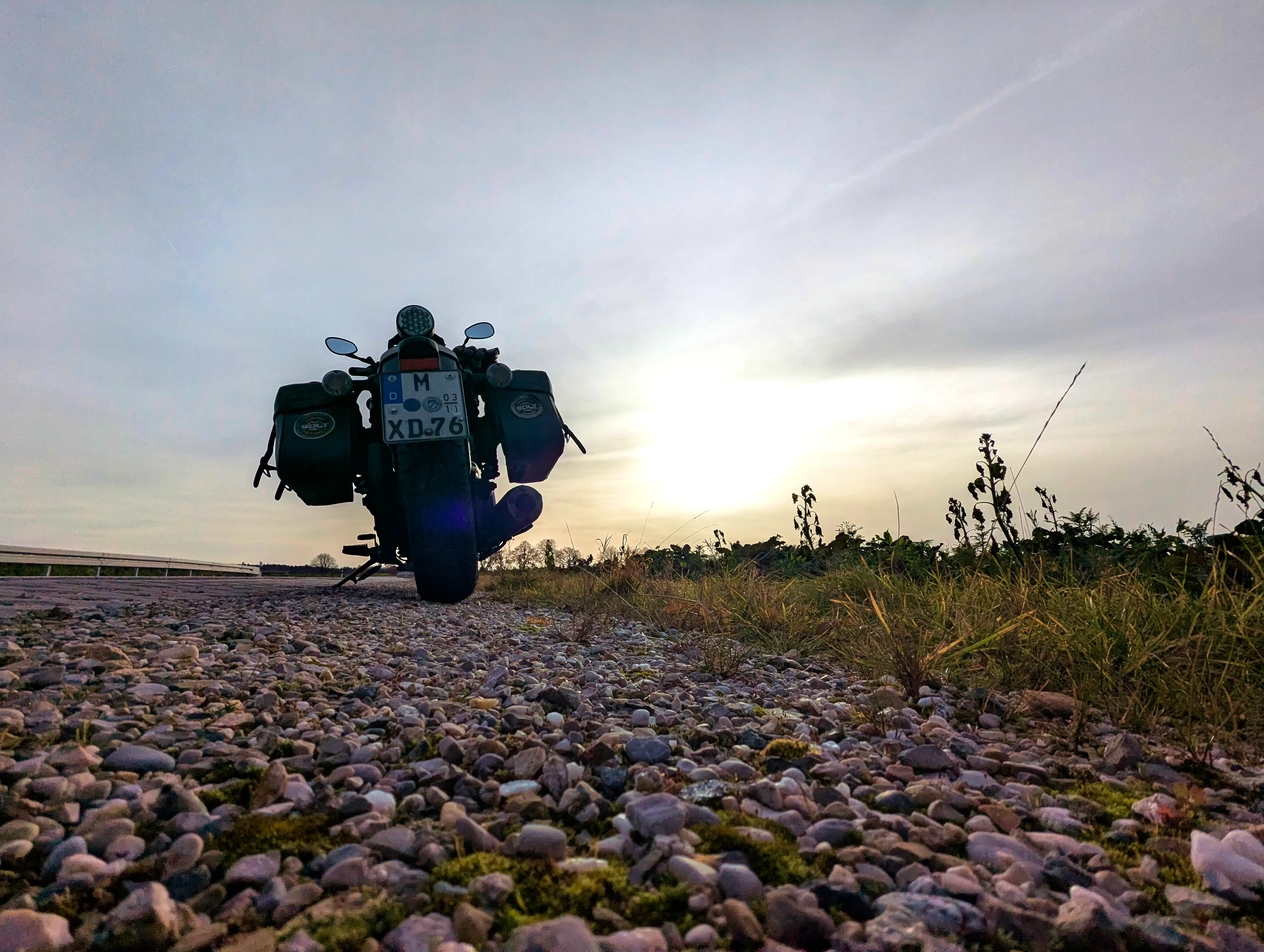 Den Arbeitstag im Home-Office ließ ich äußerst pünktlich ausklingen, anschließend zog ich mir gleich die Motorradklamotten an und ging zur Bolt. Motor an, los geht’s! Um kurz vor 15 Uhr fuhr ich los, die Sonne stand da bereits sehr tief.