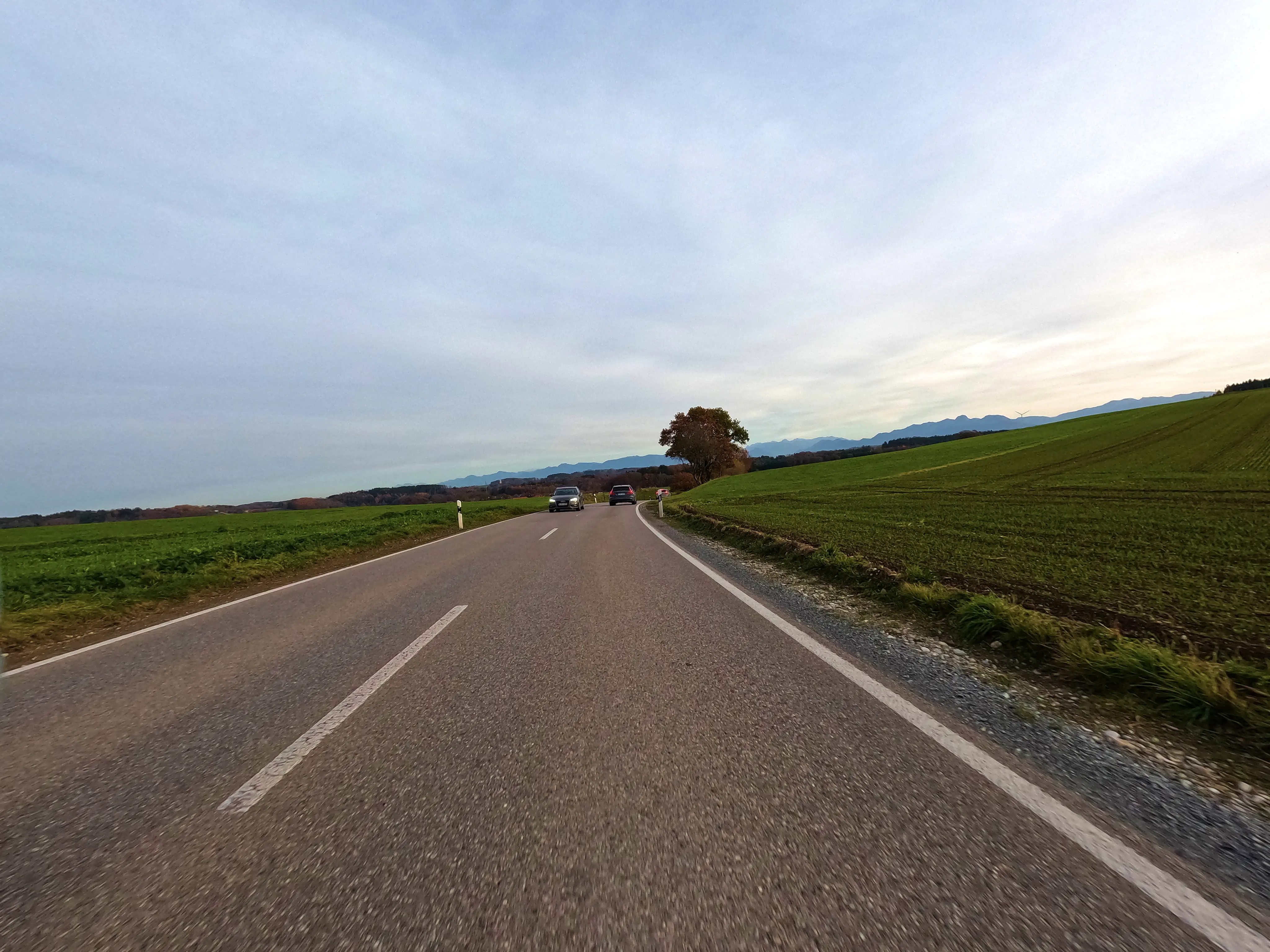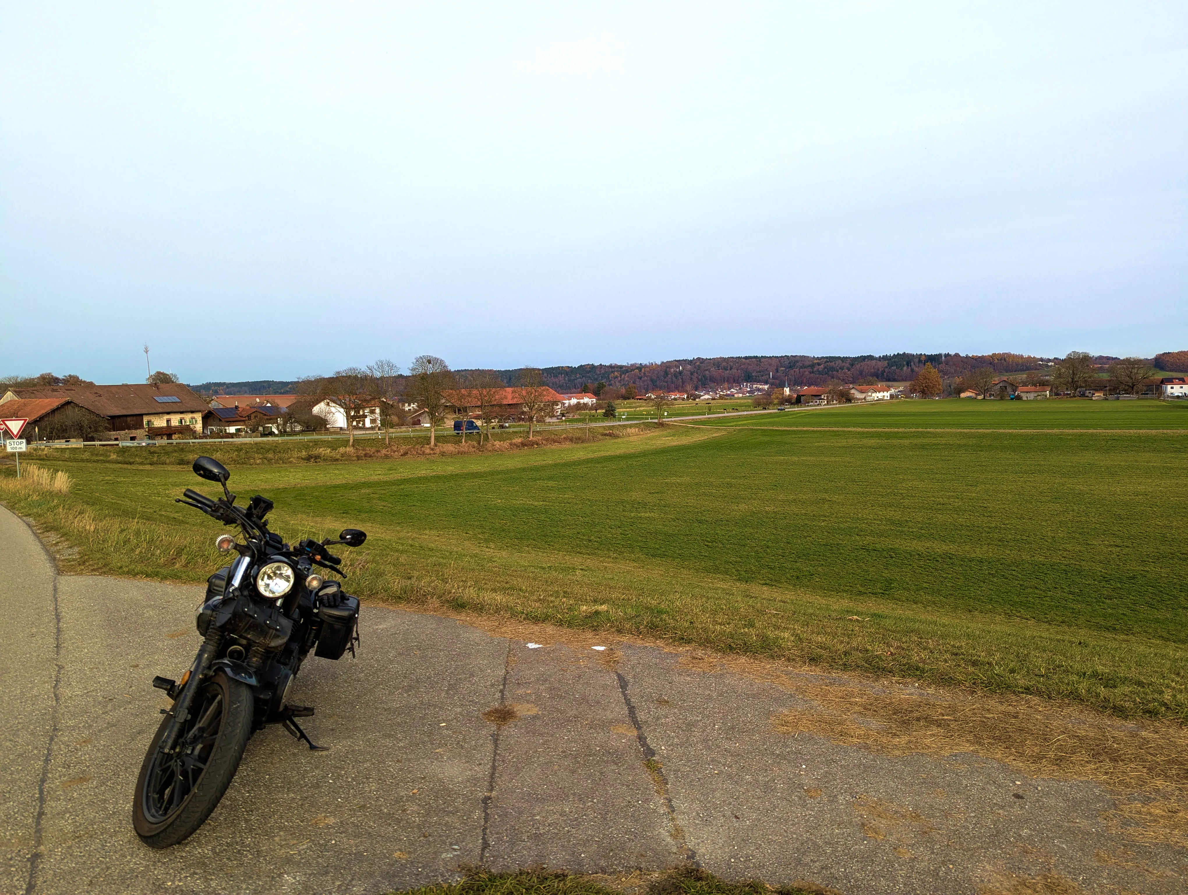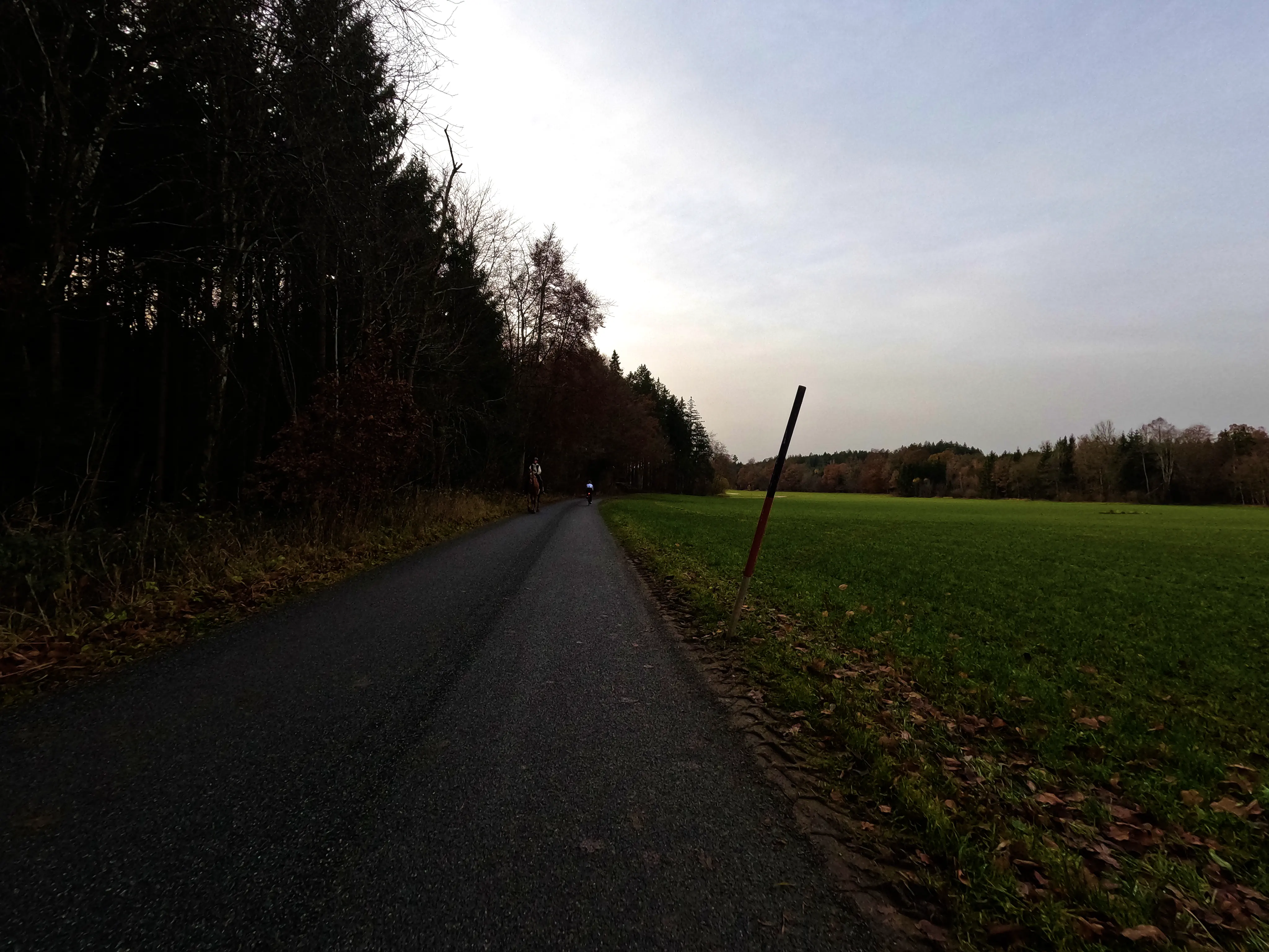 Feldkirchen war dann auch der südlichste Punkt, inzwischen war es nach 16 Uhr, und demnächst würde die Sonne wohl untergehen. Außerdem fiel in der langsam einsetzenden Dämmerung auf, dass mein Abblendlicht den Geist aufgegeben hatte. Um gesehen zu werden, fuhr ich ab hier also mit Fernlicht - den Gegenverkehr freute es. Über Unterlaus ging es nach Glonn, von hier aus dann ein letztes Mal für die Saison 2025 über die Hausstrecke nach Moosach und Zorneding. Natürlich gab es auch hier noch die ein oder andere Gelegenheit für ein paar schöne Fotos.