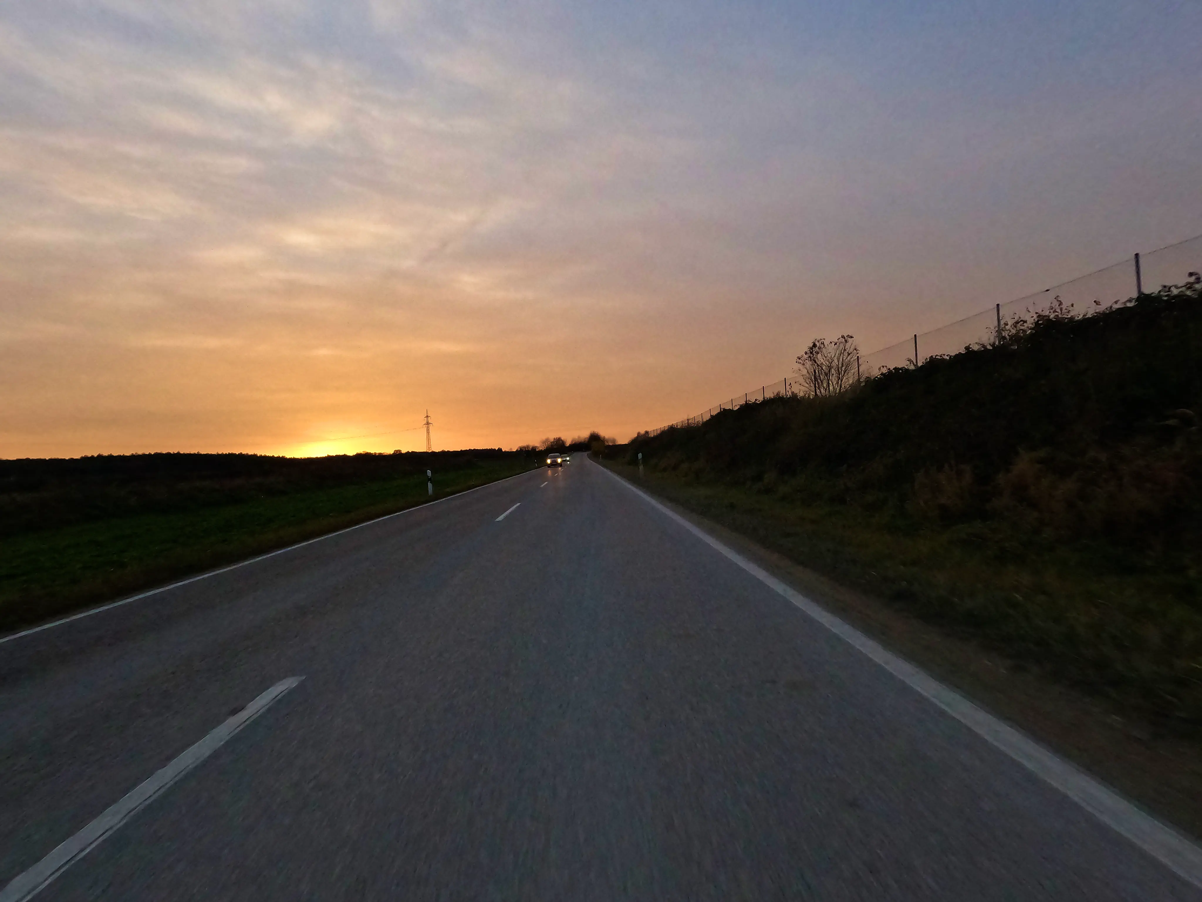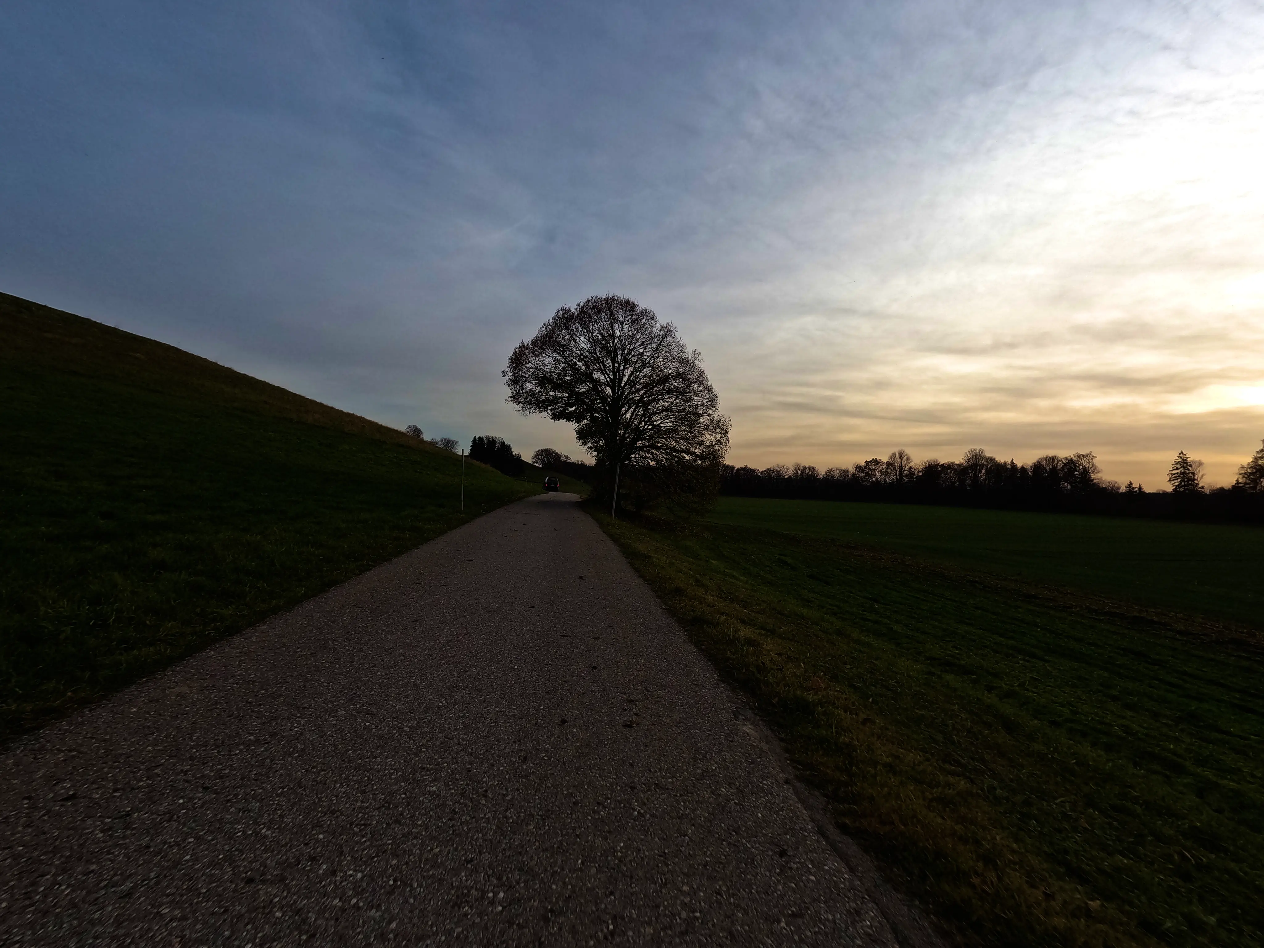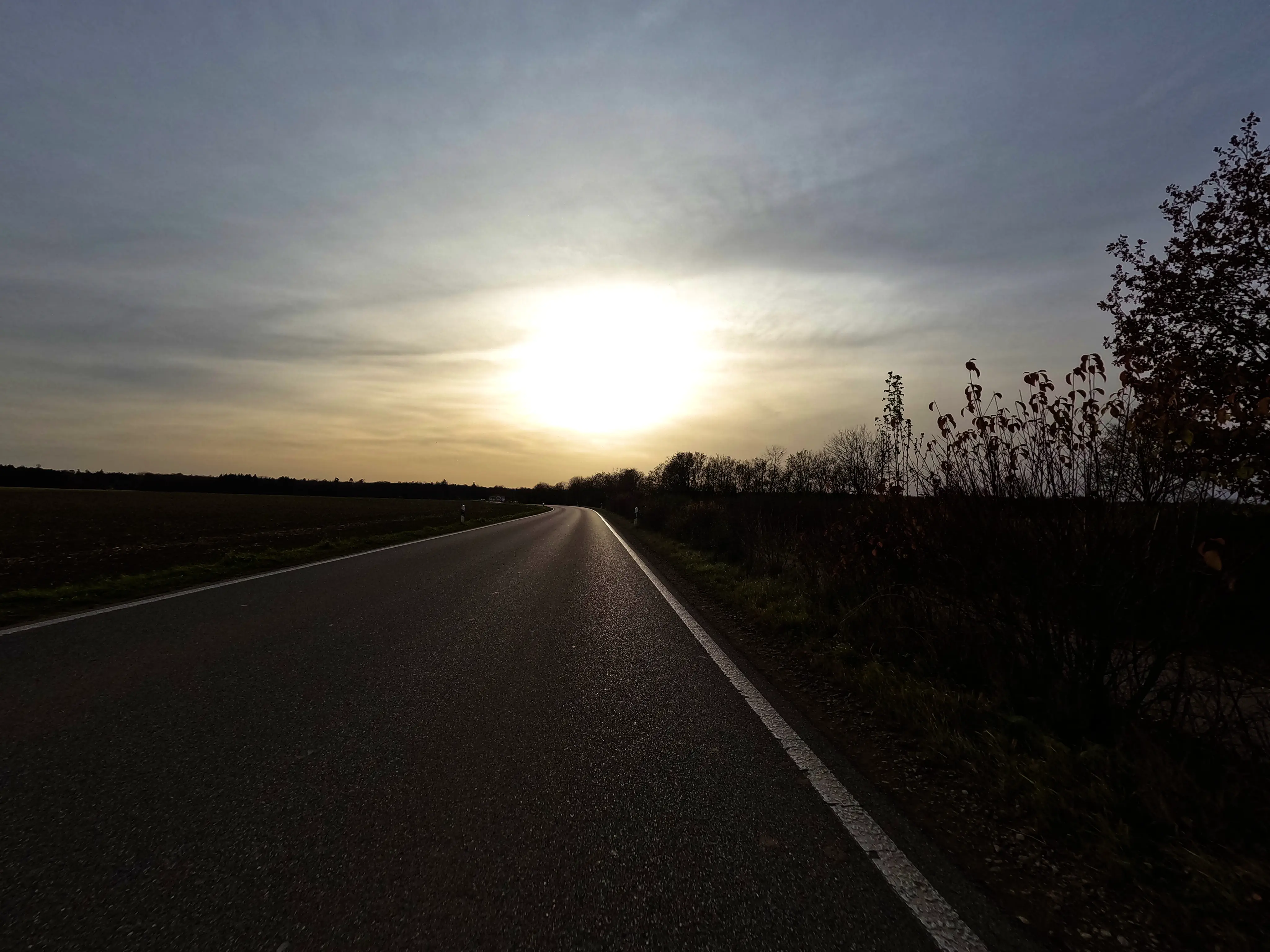 Feldkirchen war dann auch der südlichste Punkt, inzwischen war es nach 16 Uhr, und demnächst würde die Sonne wohl untergehen. Außerdem fiel in der langsam einsetzenden Dämmerung auf, dass mein Abblendlicht den Geist aufgegeben hatte. Um gesehen zu werden, fuhr ich ab hier also mit Fernlicht - den Gegenverkehr freute es. Über Unterlaus ging es nach Glonn, von hier aus dann ein letztes Mal für die Saison 2025 über die Hausstrecke nach Moosach und Zorneding. Natürlich gab es auch hier noch die ein oder andere Gelegenheit für ein paar schöne Fotos.