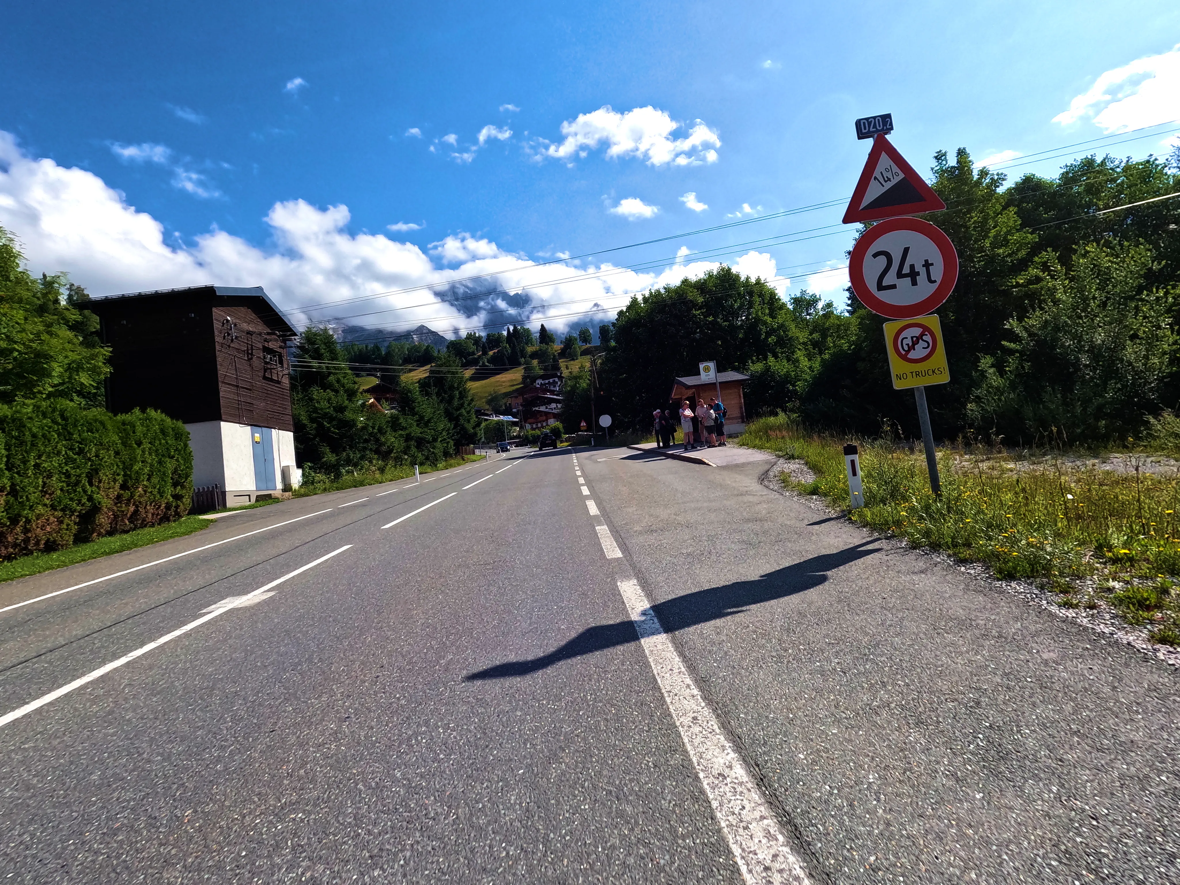 In Saalfelden war der Verkehr etwas fordernd, doch irgendwann war auch der Ort durchquert. Für mich ging es weiter in Richtung Westen, das nächste Ziel sollte der Grießenpass sein. Dieser liegt recht unauffällig ebenfalls an der B164. Auf dem Weg dorthin hatte ich kurz Sorge, dass ein Gleitschirmflieger auf der Straße oder auf dem Dach eines Hauses landen würde, er hat es aber sicher auf eine Wiese geschafft. Diesmal nutze ich nicht das Passschild des Grießenpasses als Nachweismotiv: Aufgrund einer Baustelle war der Verkehr am Passschild doch sehr stark, deswegen wollte ich hier nicht halten. Somit nutze ich das nächste Ortsschild (»Hochfilzen«) als Nachweismotiv, was kein Problem darstellte.